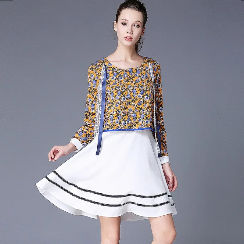 4.7 108 Video Reviews 2017Autumn Ladies plus size elegant faux two ball gown Dress juniors floral printed contrast color cultivating Dress XXXXXL 7068 plus-floral-dress