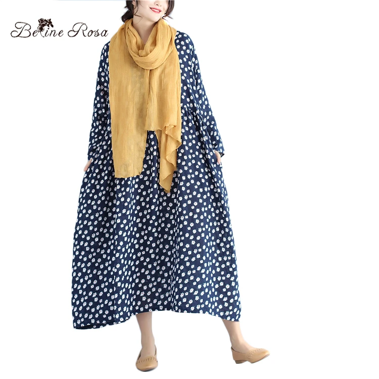 >> Build Click! <<BelineRosa 2017 Women's Autumn Dresses Japanese Style Floral Printed Deep Blue Long Sleeve Plus Size Dresses Women BSDM0050 plus-floral-dress