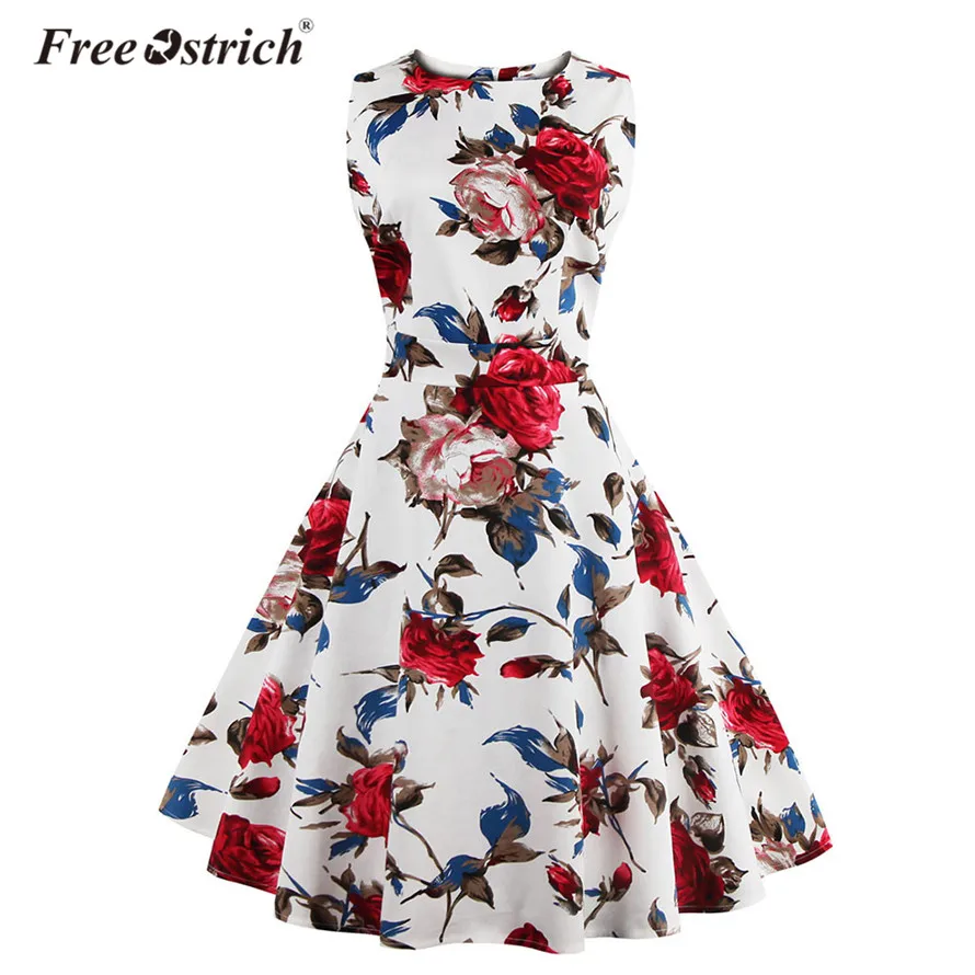 Free Ostrich 2017 Summer Dresses for Women Plus Size O Neck Sleeveless Floral Print Elegant Party Dress Vintage Dresses Aug30 plus-floral-dress
