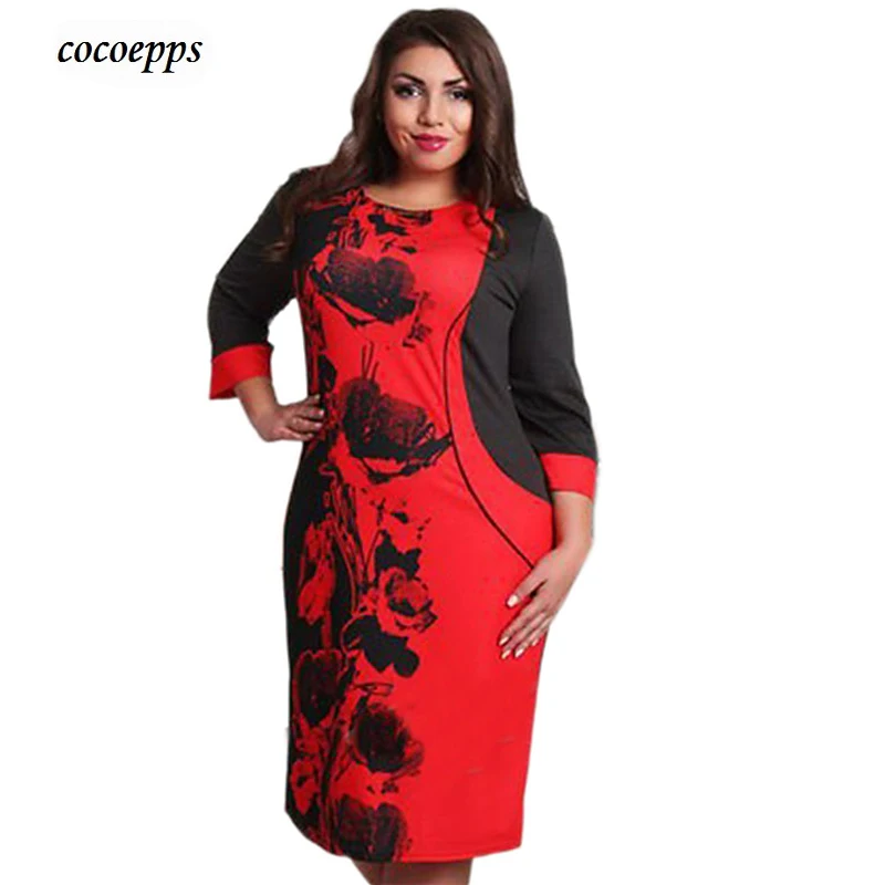 New 2017 Women Dress Elegant Plus Size 5XL Casual Patchwork floral print Women Clothing Summer Style Vestidos Femininos 6XL plus-floral-dress