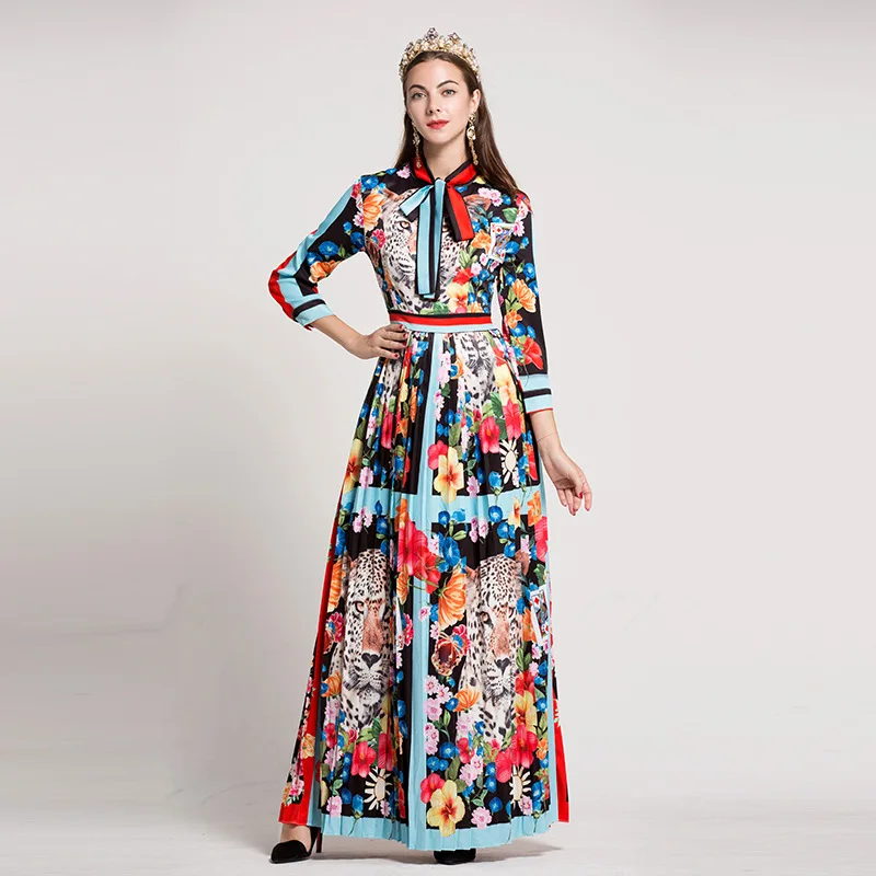2017 New Fashion Autumn Winter Women Long Maxi Runway Dress Elegant Charming Floral Print Plus Size XXXL Pleated Holiday Dresses plus-floral-dress