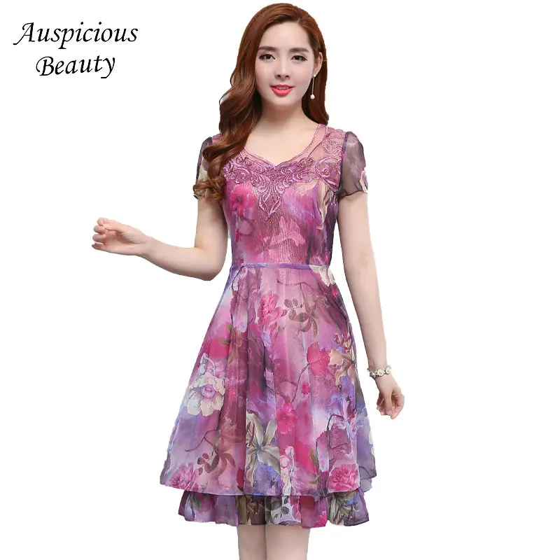 Plus Size 5xl 2017 Luxury Summer Sexy Dress Short Sleeve Floral Print O-neck A-line Chiffon Slim Fit Party Dress Female ZJP06 plus-floral-dress