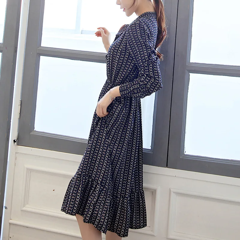 ☉ Solve 2017 new spring autumn Fashionable women dress V-neck bowknot