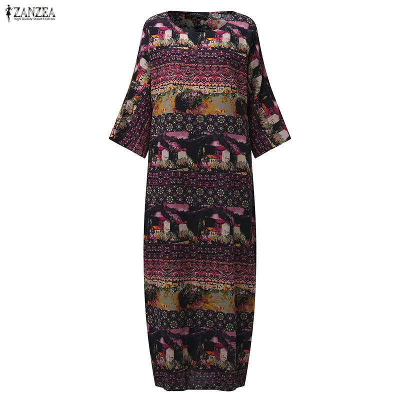 >> Cheap Click! <<2017 ZANZEA Women O Neck Batwing Sleeve Vintage Floral Print Casual Loose Maxi Long Dress Party Kaftan Vestido Plus Size plus-floral-dress