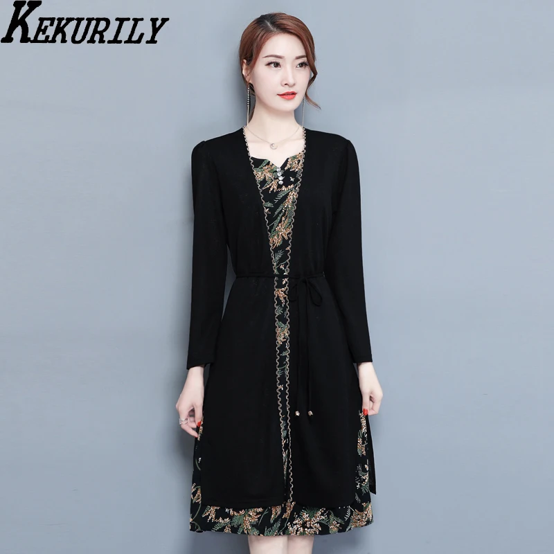 KEKURILY women cardigan black dress suits floral plus size xxxl 3xl 4xl large 2 piece female elegant vintage full clothing plus-floral-dress