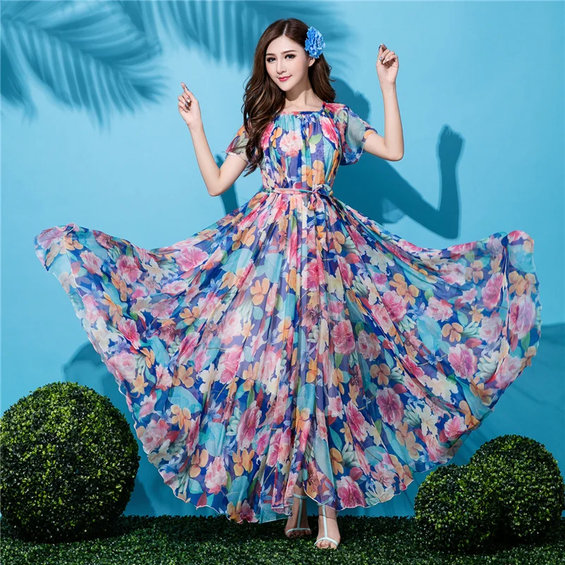 4.8 102 Video Reviews 2017 New Summer Floral Long Chiffon Maxi Dress Gown Plus Sizes celebrity/graduation/Dinner Dress Beach Bridesmaid Sundress plus-floral-dress