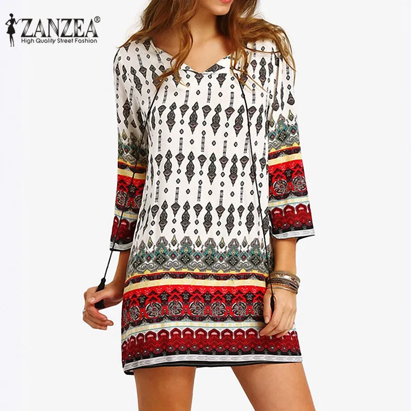 ZANZEA Bohemia Womens Summer Lace-up Floral Kaftan Party Mini Dress Beach Sundress Plus Size 2017 plus-floral-dress