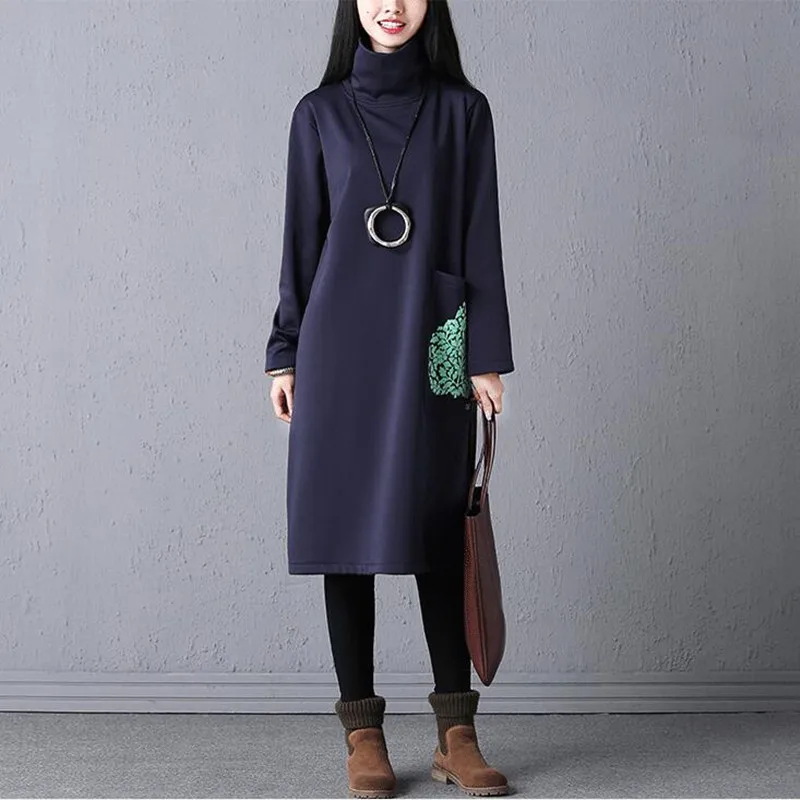 Dress Plus Size Basic Kaftan Cotton Casual Warm Dress Winter Autumn NEW