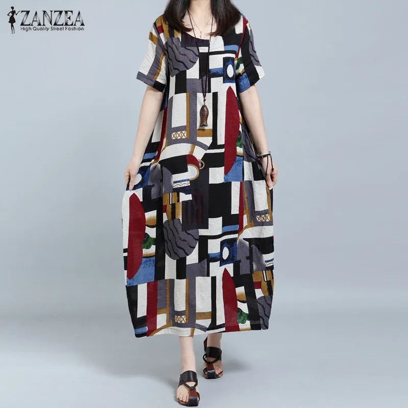 >> Cheapest Click! <<Plus Size L-5XL 2017 ZANZEA Women O-Neck Short Sleeve Casual Loose Shirt Dress Retro Floral Print Long Dress Kaftan Vestido plus-floral-dress