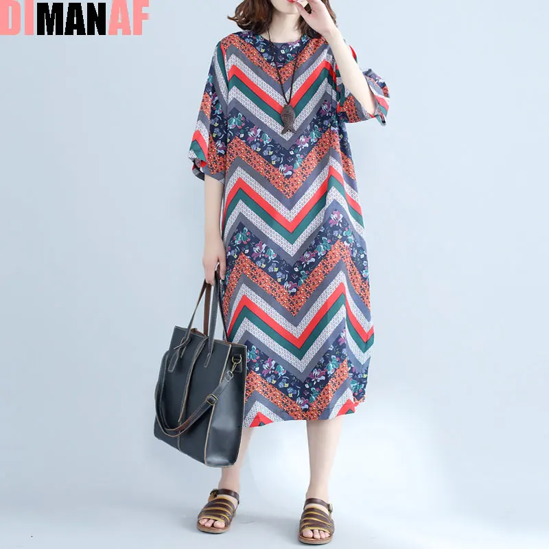 4.9 104 Video Reviews DIMANAF Dress Women Plus Size Summer Style Striped Print Chiffon Female Fashion Elegant Casual Floral New Show Thin Blue Dresses plus-floral-dress