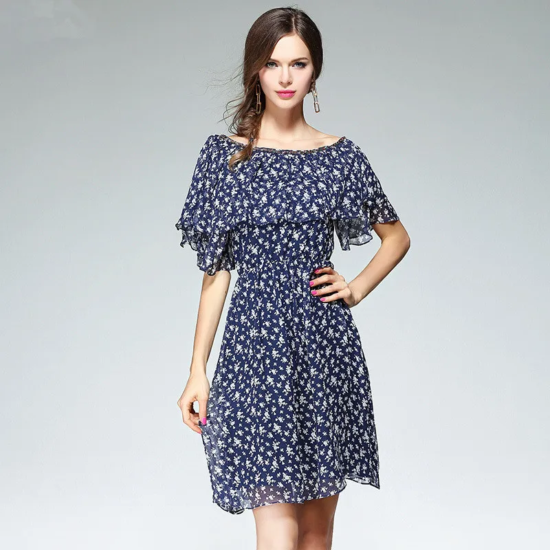 Women's Summer Dress New Silk Plus size Knee Length A line Loose Floral Printed Casual Dresses free shipping plus-floral-dress