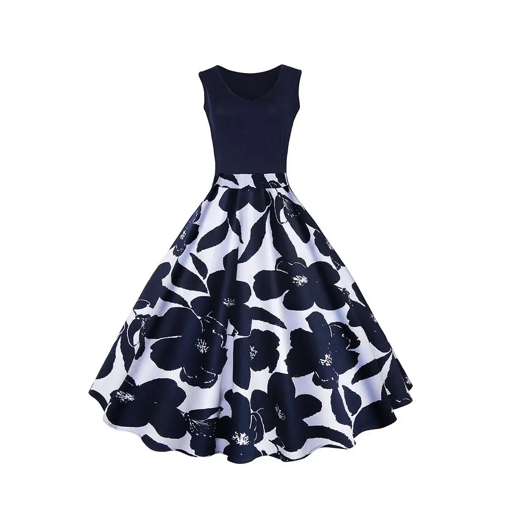 Plus Size Fashion Woman Dress O-Neck Sleeveless Floral Prints Mini Dress Splicing A-Line Pleated Vintage Pretty Party Summer 5XL plus-floral-dress