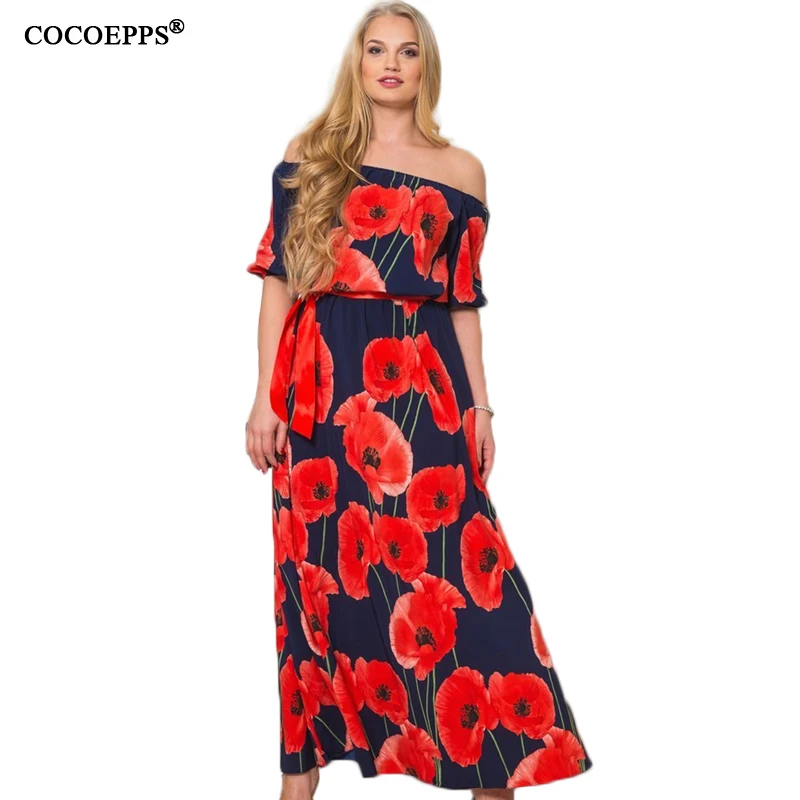 COCOEPPS Vintage Floral Printed Women Dress Big Size 2017 Summer Sexy Off-Shoulder Maxi Dresses Plus Size Half Sleeve Vestidos plus-floral-dress