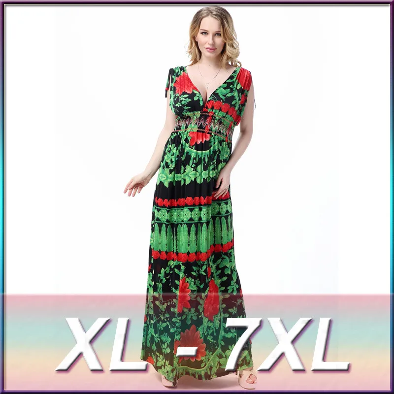 ☁ Low Prices 2017 Women Summer Dress Plus Size 7XL Long Beach Maxi