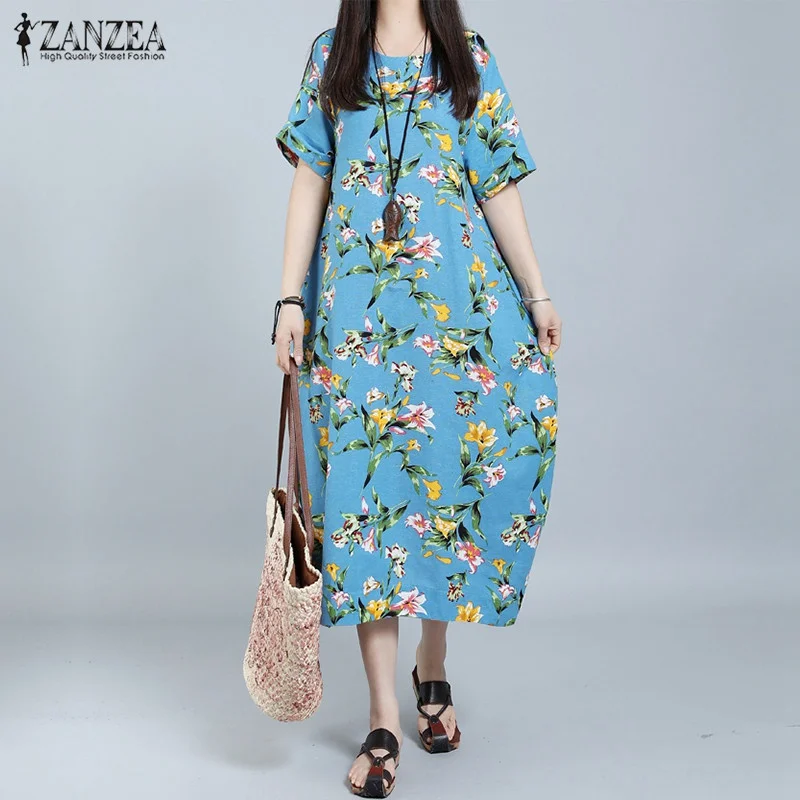 ZANZEA Women Summer Dress 2017 Fashion Short Sleeve Vintage Floral Print Dresses Casual Loose Robe Vestidos Plus Size XL-5XL plus-floral-dress