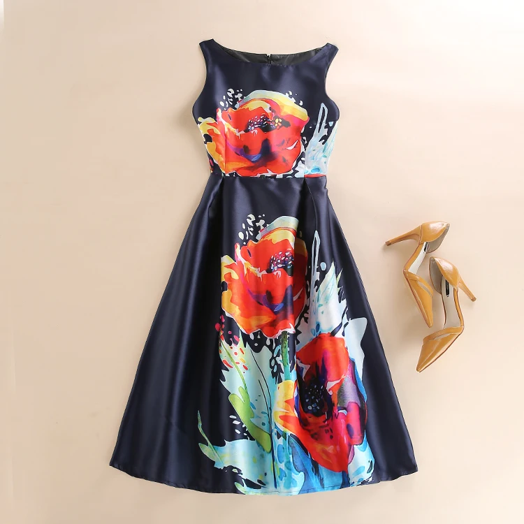 4.8 108 Video Reviews 2016 New Summer Dresses Vintage Floral Print Casual Women Sleelvess Midi Dress Fashion Design Party Vestidos Plus Size mujer plus-floral-dress