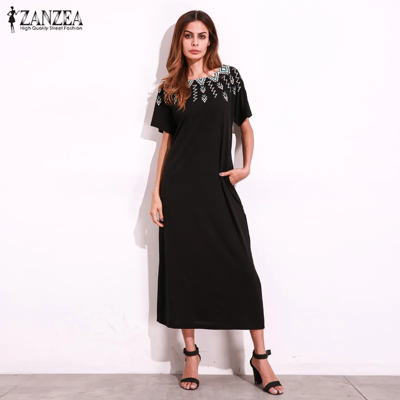 Check Price ZANZEA Women Round Neck Floral Print Kaftan Vestido Summer Female Short Sleeve Casual Loose Maxi Long Dress Plus Size S-5XL plus-floral-dress Revise