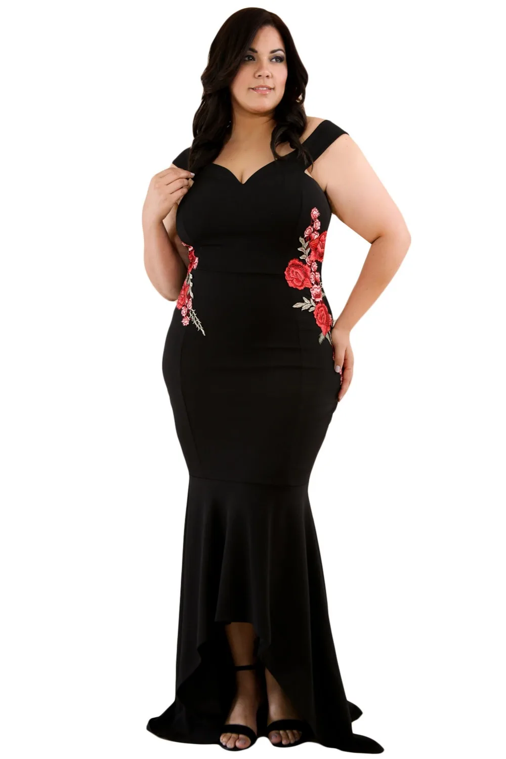 2017 Summer New Sexy Women Party Club Dresses Black Plus Size Embroidery Floral Mermaid Maxi Dress LC61606 Vestidos Verano Mujer plus-floral-dress
