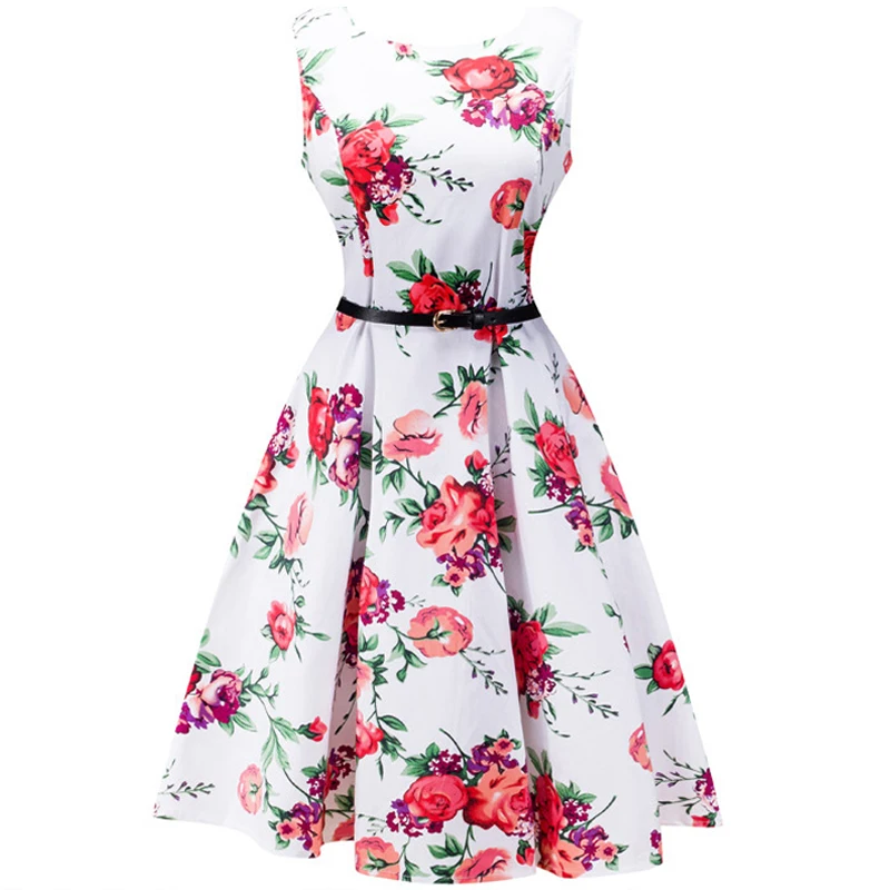 ☆ Buy 2017 Women Dress Floral Print Sleeveless O-Neck Belt decoration