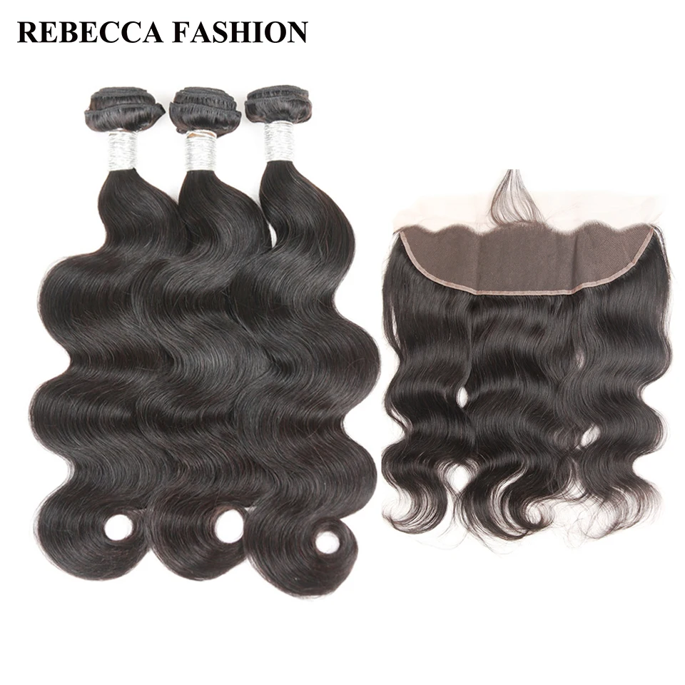 Rebecca Brazilian Hair Weave 2/3 Bundles With 13x4 Lace Frontal Body Wave Remy Human Hair Bundles Closure For Salon Hair