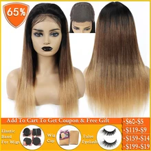 T1B/4/27 honey blonde ombre human hair wig Brazilian straight lace closure wig Human Hair Wigs for women non-remy 150% Density Beauty Supply