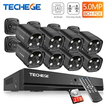 Techege H.265 8CH 5MP HD POE NVR Kit CCTV Security System Two Way Audio AI IP Camera Outdoor Waterproof Video Surveillance Set Video Surveillance