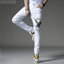 >>>> I recommend it POVOTE jeans men's retro nostalgic straight trousers pattern design men's jeans pants motorcycle jeans trend design white Jeans Click here !!!